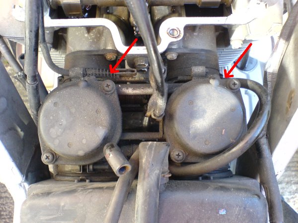 Since none of the GS500 manuals in circulation have a correct picture of where the vacuum ports are located on the carburettors of a 2002+ bike and having spent 20 minutes looking at the carburettors without a clue as to where to connect the vacuum gauge tubes I thought that I would document my eventual success in synchronising them.