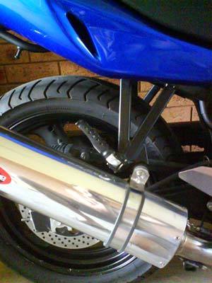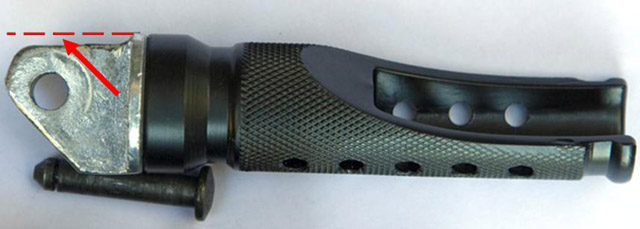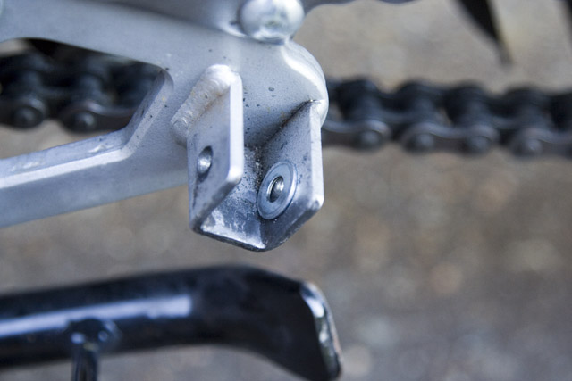 5. drill a hole for a bolt or thick split pin to ensure the rear footpeg wont rotate past that position